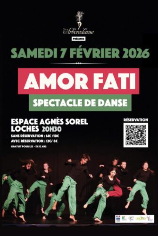 La compagnie Arboredanse présentera son spectacle "Amor Fati" le samedi 07 février 2026 à l'Espace Agnès Sorel de Loches à 20h30. Ce spectacle est un triptyque dont le 1er volet fut créé en 2018 et le dernier en 2025.